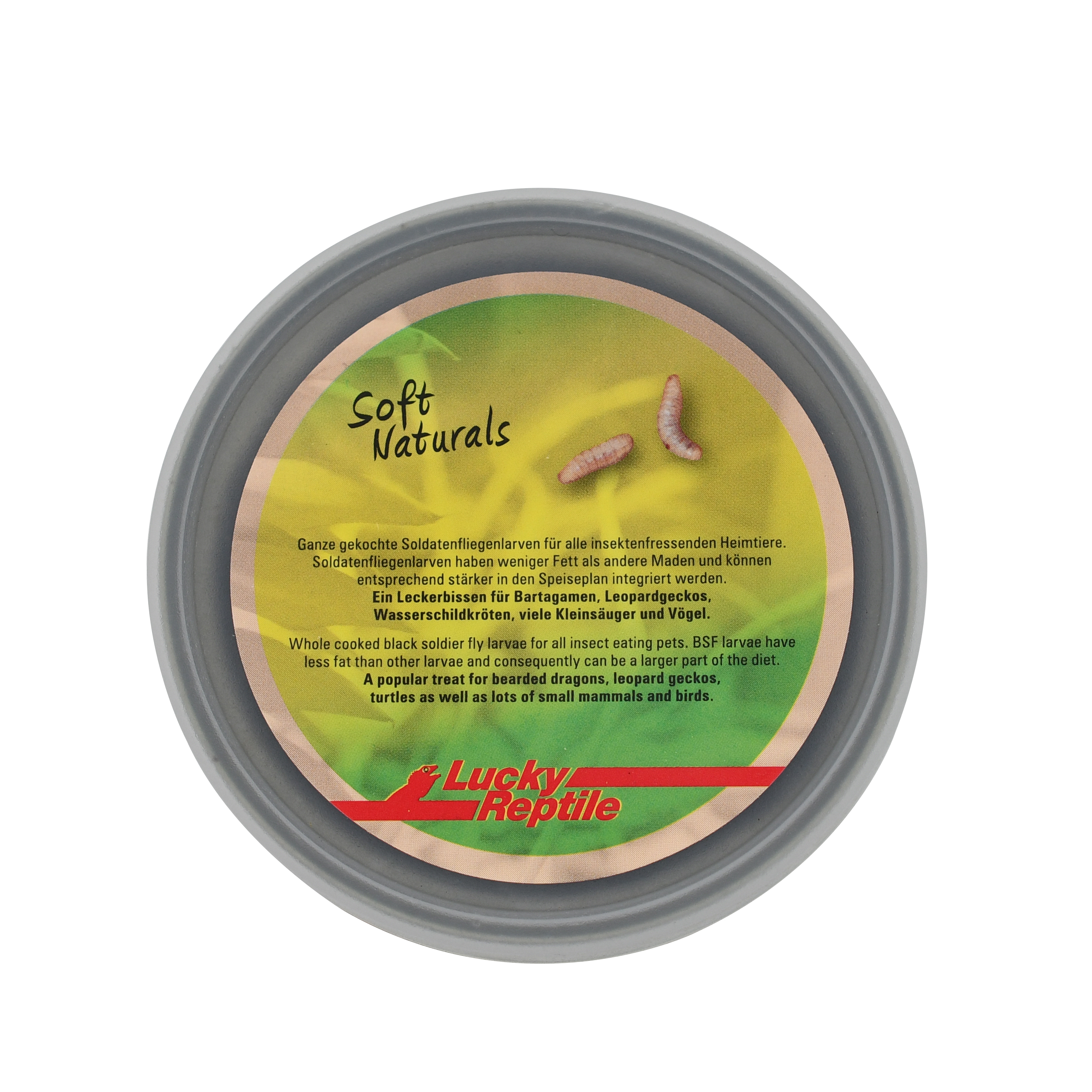 Analytische Bestandteile: Rohprotein: 11,5% Fettgehalt: 6% Rohfaser: 2,5% Feuchtgehalt: 75% Calcium: 12000mg/kg Phosphor: 1500mg/kg Zusammensetzung: Ganze gekochte Soldatenfliegenlarven: 99,7%, Sepiaschulp 0,3 %