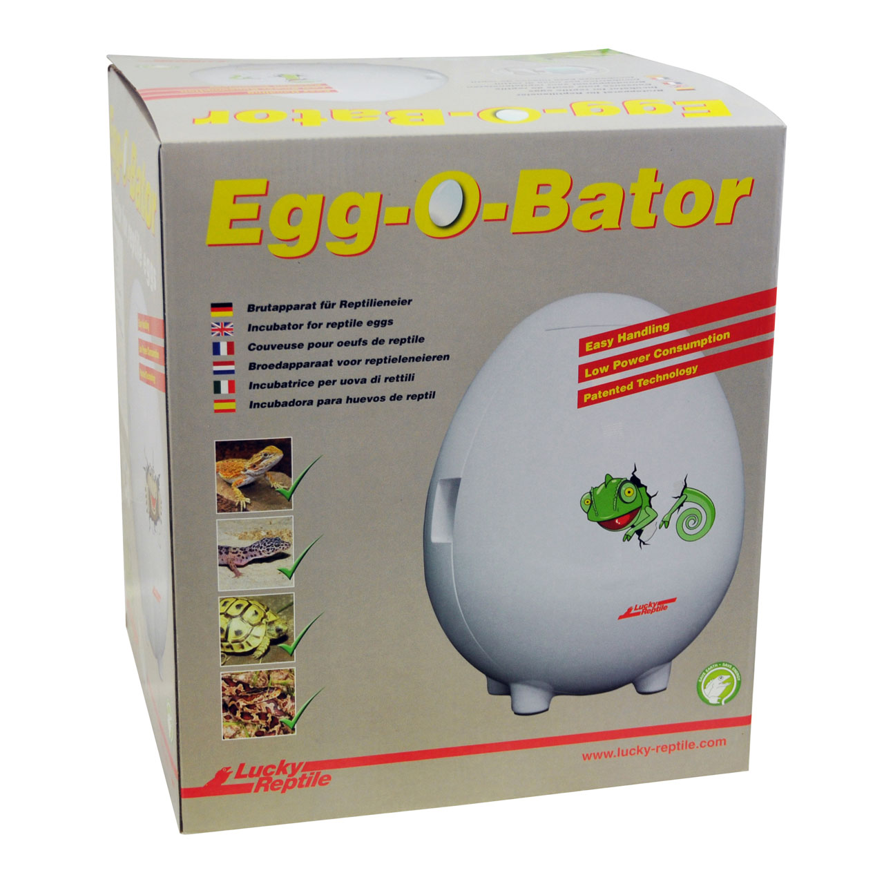 One of the most interesting aspects of herp keeping is breeding the animals. The Lucky Reptile Egg-O-Bator is the perfect incubator for the first breeding success and offers everything necessary for the beginning. It has a capacity of approximately 4L suitable for three breeding tubs. Operating is as easy as it can be: Plug it into the wall socket and choose one of three possible temperatures: 26°C, 29°C and 32°C. These temperatures are perfect for most popular reptiles, such as leopard geckos, bearded dragons or corn snakes. Breeding recommendations and hints for these and other popular species can be found in the extensive manual. The casing of the incubator has very good insulation capabilities, minimizing the influence of the outside temperature and also guaranteeing a low energy consumption of just 5 W/h on average. The Egg-O-Bator brings a lot of fun because of its innovative egg form and blends in well into childrens rooms. Three stickers with different funny motives chameleon, snake and tortoise - are included, so young herp keepers can decorate their first incubator by themselves as desired. Interior Dimensions: approx. 11,5x14,5x22 cm (W x D x H) Outer Dimensions: approx. 28x26x32 cm