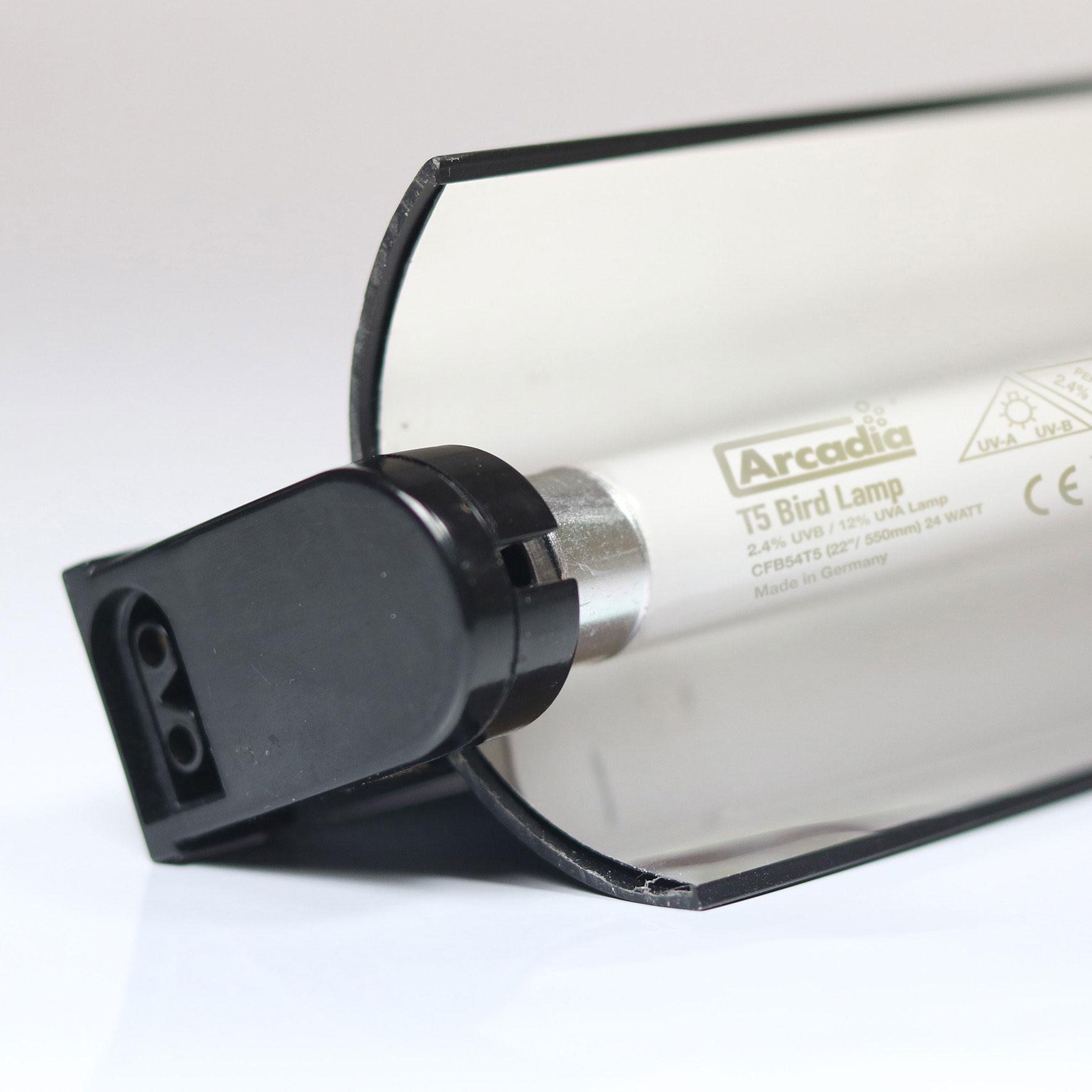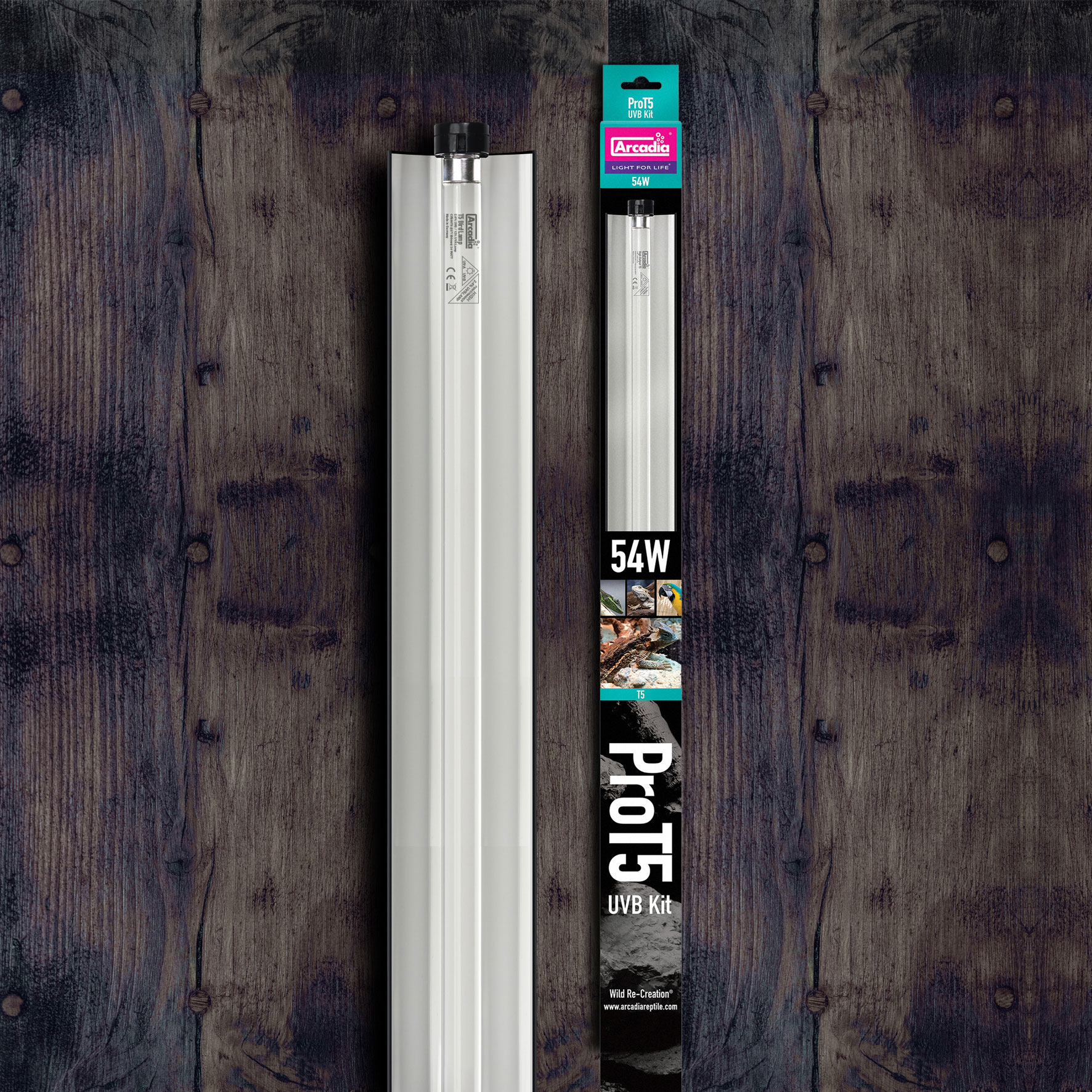 Das Arcadia Pro T5 UV-B Kit ist ein äußerst anpassungsfähiges Beleuchtungsset mit - hochwertiger interner Elektronik - einem hocheffektiven, aber abnehmbaren Reflektor - inkl. Leuchtmittel 54W 1150mm (2,4% UVB Bird Lamp) - Stromkabel - Beschlagsatz - Verbindungs-Kabel (um mehrere Einheiten einfach verbinden zu können).