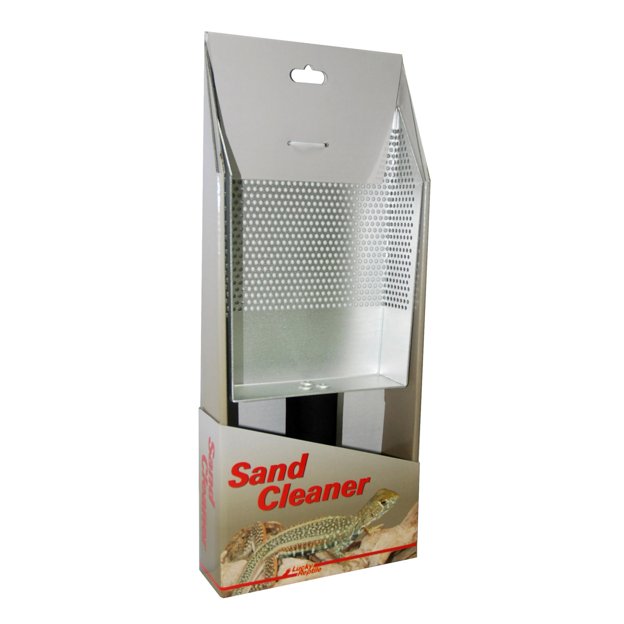 The Sand Cleaner is a convenient tool for cleaning vivarium sand. It is very robust and has a special design which offers several advantages over original sand sifters. The flat underside allows easy handling inside the vivarium. The perfectly sized holes ensure a quick and thorough cleaning result. In order that no dirt and sand is distributed outside the vivarium, the Sand Cleaner has a part with no holes at the back. By holding the Sand Cleaner in an angle the dirt is collected in this area and can be safely brought to the trash bin.