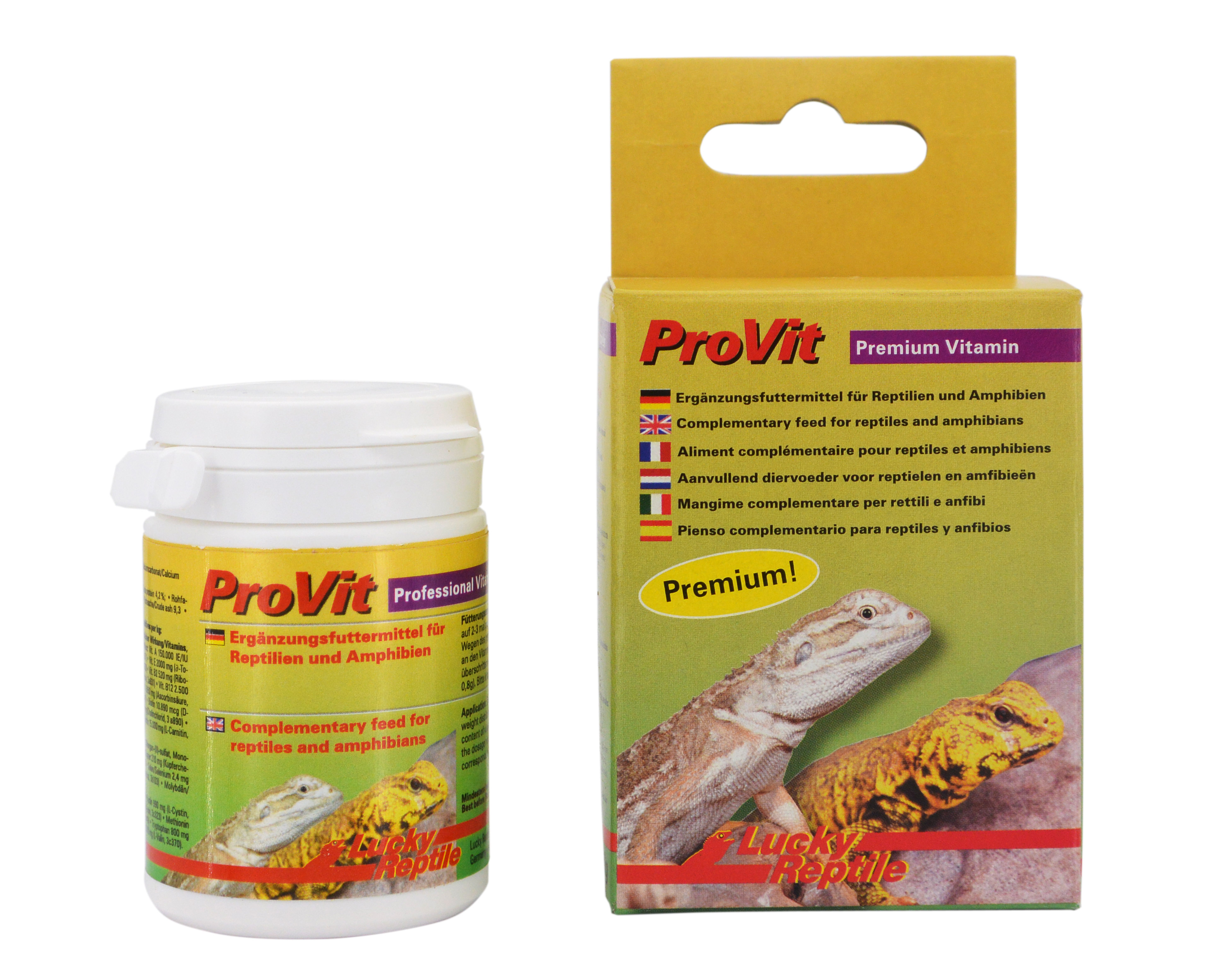 PRO Vit is a vitamin supplement that has been tailored to the needs of reptiles and amphibians incooperation with a renowned institute for animal nutrition. Thanks to a meaningful combination andselection of ingredients PRO Vit covers the requirements of herbivorous and carnivorous reptileslikewise.Apart from all vital vitamins PRO Vit also contains other important ingredients like minerals, trace elementsand essential amino acids. A lot of vitamin supplements refrain for costs reasons from usingthese vital and important ingredients.The calcium phosphor ratio is 4:1 to compensate the unfavorable ratio of green food and most feedinginsects. Using high quality ingredients guarantees a high bio availability and good utilization bythe animals.PRO Vit is a very adhesive powder and excellent to dust feeding insects with. For optimal care ofyour animals use PRO Vit 2-3 times a week over the food or feeding insects. Please consider thedosage instructions!