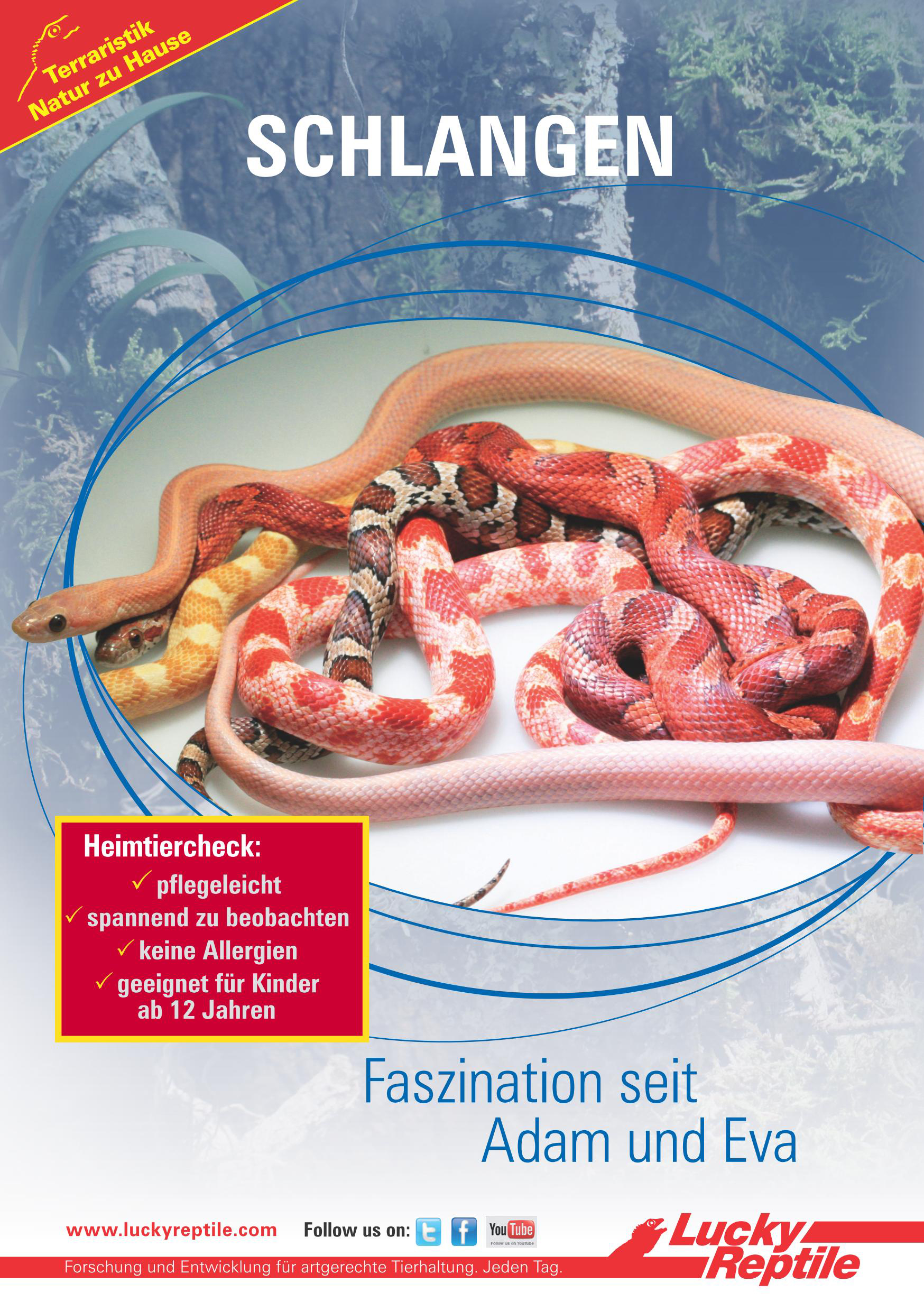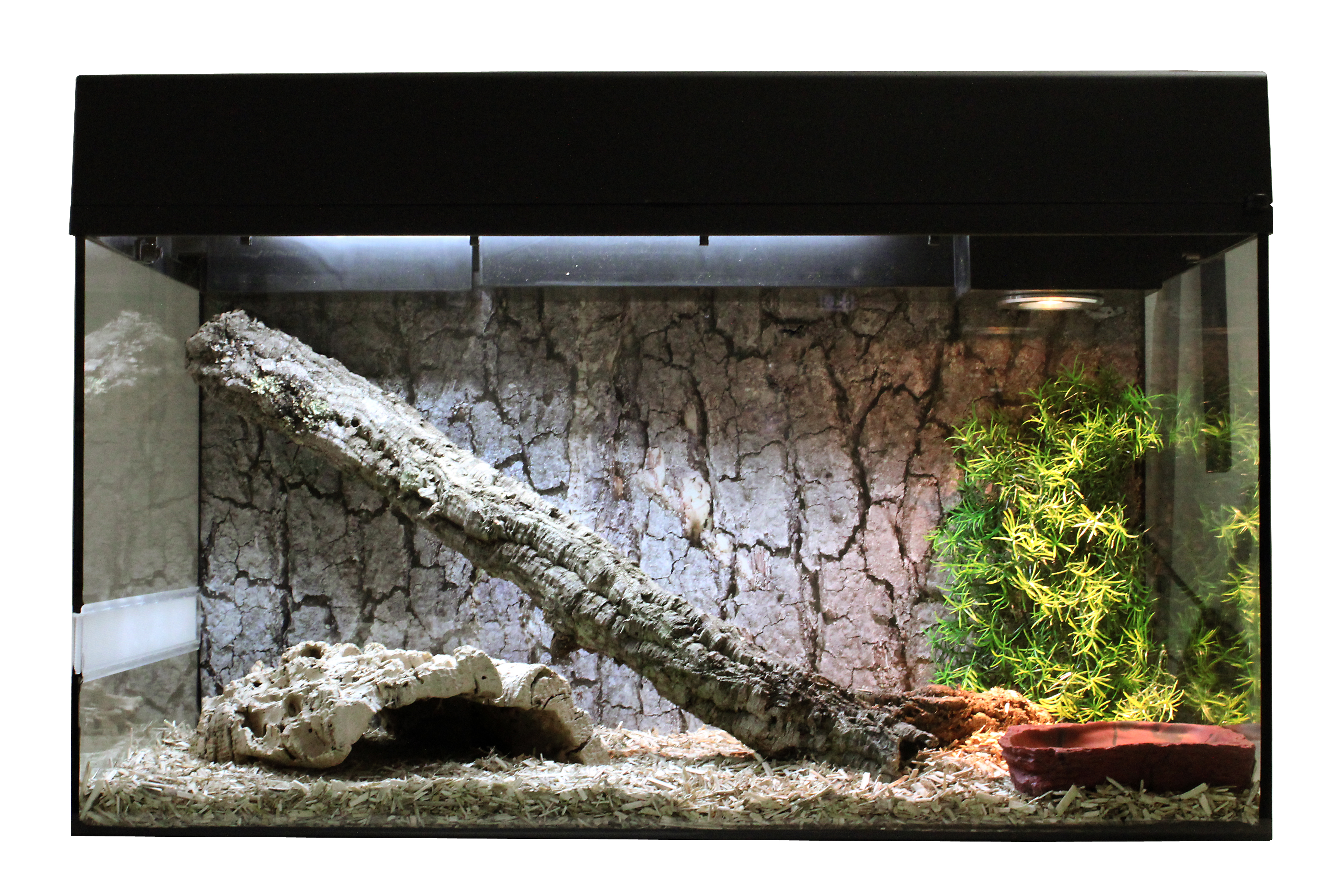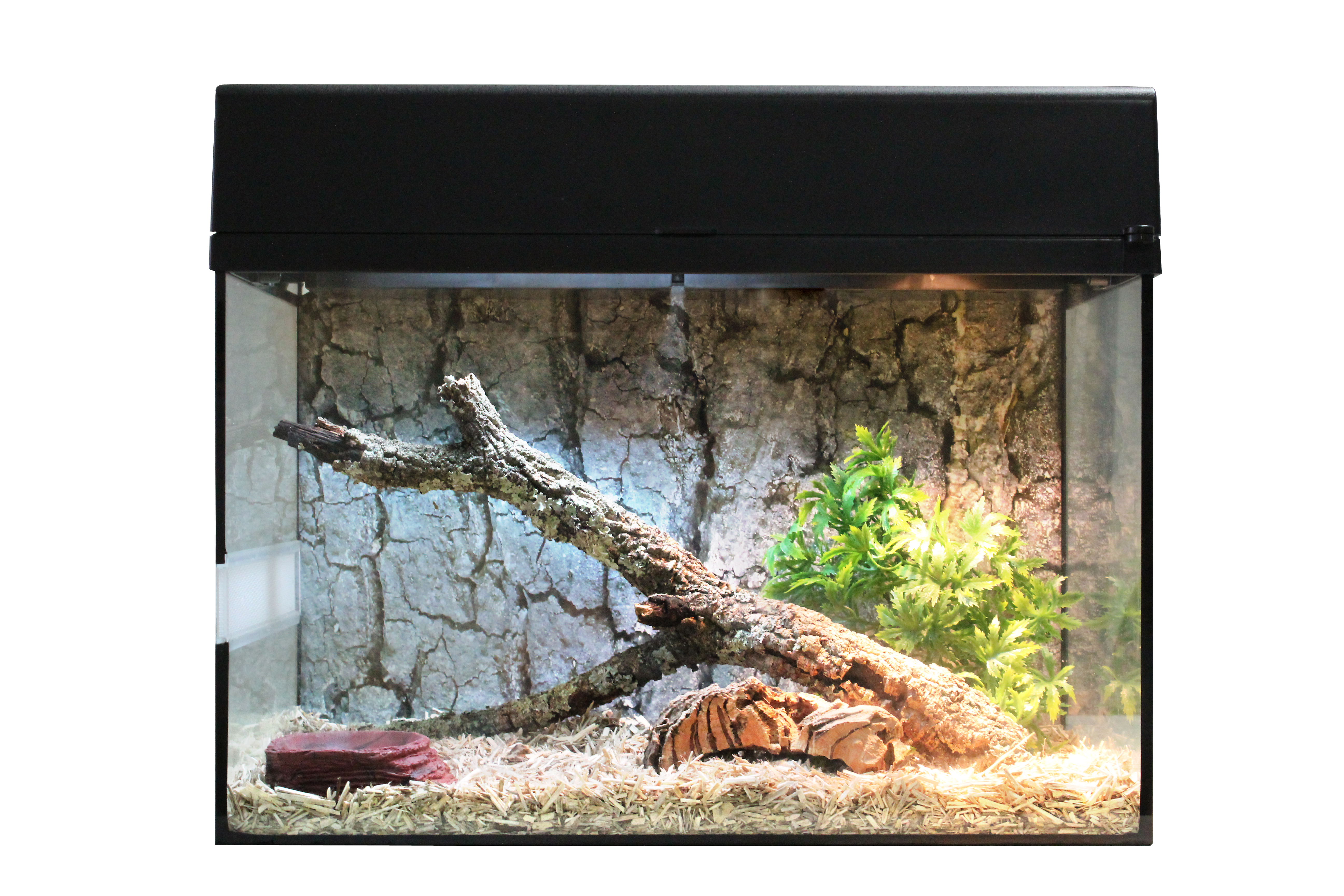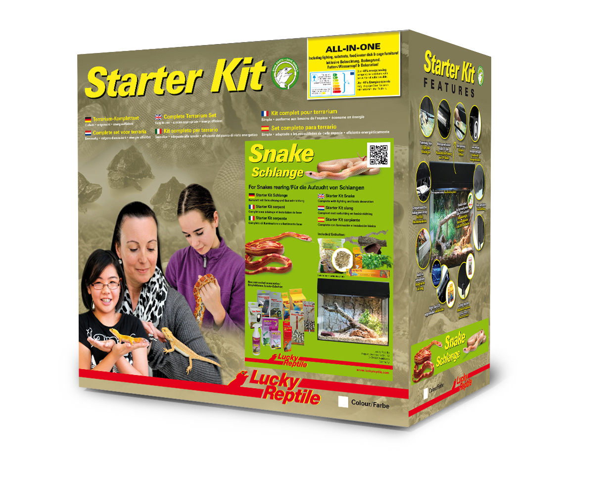 For snakes we offer two differently sized Starters Kits which contain everything you need for most of common snakes species. First of all, these terrariums are meant for the raising of juvenile snakes, e.g., the 50 cm variant for the popular corn snake or the 80 cm version for a ball python. However, there are also snakes which are suitable for a permanent keeping in the 80 cm version of the Starter Kit. We present some well available and particularly attractive species in the enclosed brochure. Your specialist pet shop will certainly help you to select the right animal for you and advise which additional accessoiries are needed.