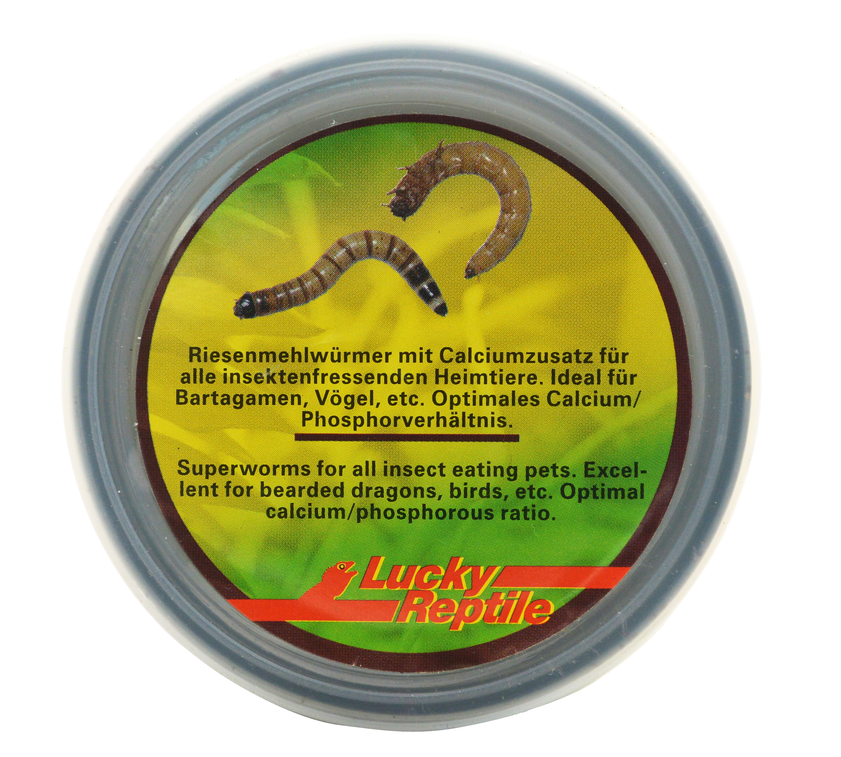 Die Herp Diner Superworms wirken frisch und werden entsprechend gerne von Bartagamen und anderen großen Reptilien aber auch Vögeln angenommen. Der Zusatz von Sepiaschulp sorgt für ein optimales Calcium-Phosphor-Verhältnis. Ein Vorteil besteht auch darin, dass im Gegensatz zu lebenden Zophobas keine Gefahr von den kräftigen Beißwerkzeugen ausgeht und man das Futter bedenkenlos verfüttern kann.