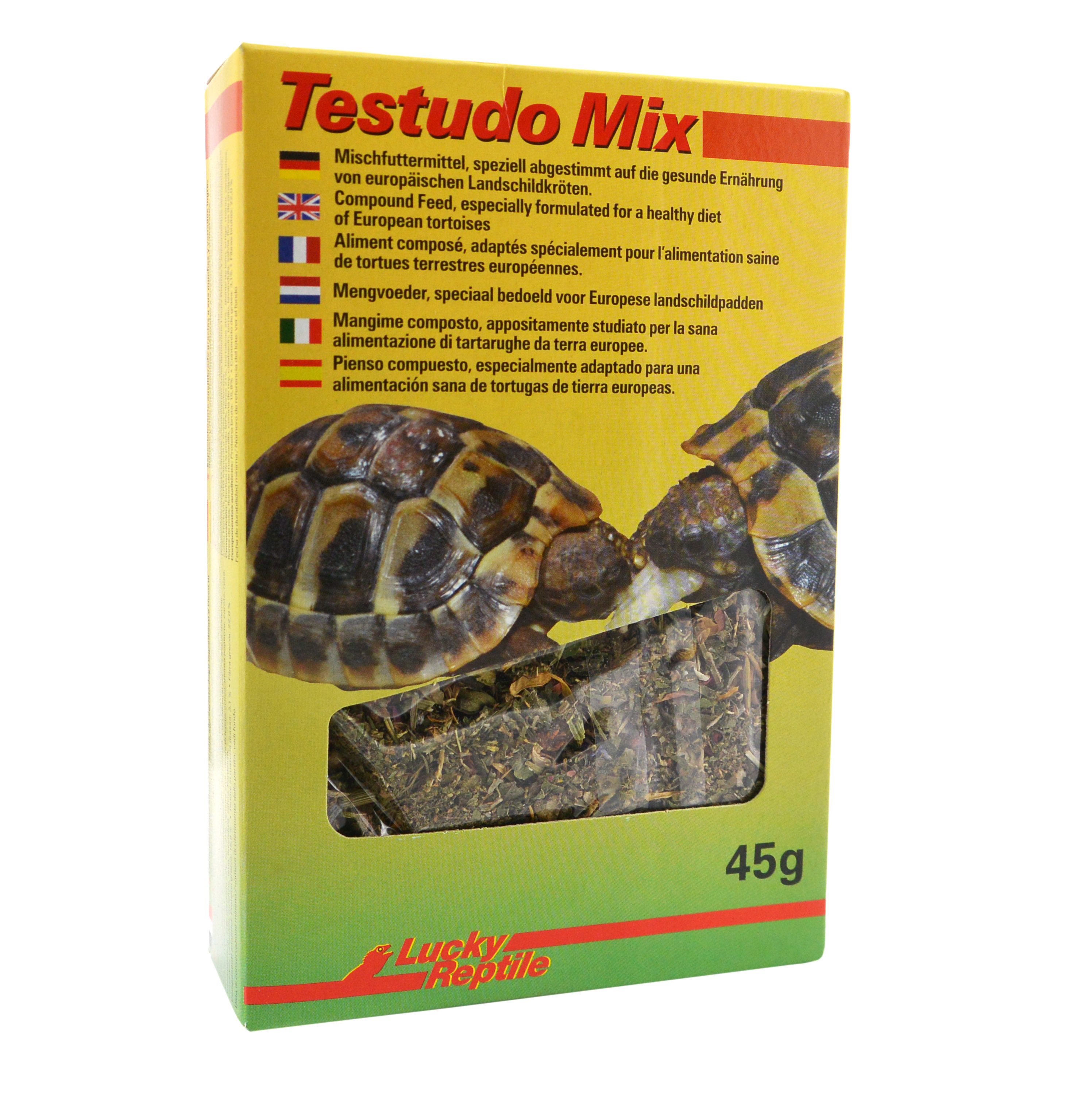 Bei der Ernährung von mediterranen Landschildkröten wird oft viel falsch gemacht und zu gehaltvoll sowie zu viel Obst und tierische Nahrung gefüttert. Lucky Reptile Testudo Mix entspricht dem natürlichen Nahrungsangebot und bieten den Tieren nicht nur ein optisch attraktives sondern vor allem leckeres und gesundes Futter. Es besteht aus getrockneten Blüten, Wiesenkräutern und verschiedenen Gemüsesorten. Die ausgewogene Mischung ist reich an natürlichen Vitaminen und Mineralien und vor allem auch sehr rohfaser- und ballaststoffreich wie es die europäischen Landschildkröten der Gattung Testudo brauchen und von Tierärzten empfohlen wird. Testudo Mix kann trocken oder angefeuchtet gefüttert werden. Wir empfehlen, das Futter mit etwas Wasser zu besprühen, damit es seinen Geruch voll entfalten kann. Eine Eignung als Hauptfutter ist grundsätzlich gegeben, wir empfehlen aber eine abwechslungsreiche Ernährung, wozu neben Lucky Reptile Tortoise Mix, Herb Mix, Herb Cobs und Flower Mix auch frische Wiesenkräuter gehören. Obst sollte man möglichst ganz von der Speisekarte von europäischen Landschildkröten streichen.