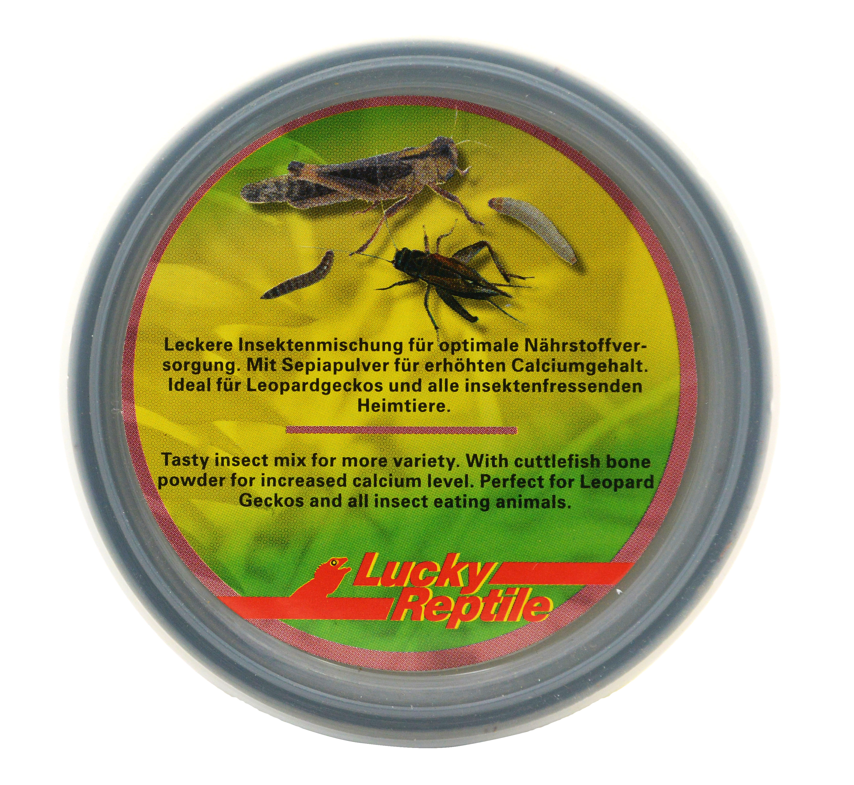 Leopardgeckos fressen Würmer für ihr Leben gern, dennoch benötigen sie Abwechslung und vor allem Calcium. Lucky Reptile Leopard Gecko Blend bietet das alles in einem Produkt. Neben Mehlwürmern sind auch mittlere Heuschrecken, Grillen und Bambusmaden enthalten und sorgen für Abwechslung. Der Zusatz von Sepiaschulp sorgt für ein günstiges Calcium-Phosphor Verhältnis von 2:1. Das Futter wird problemlos von Pinzette akzeptiert und hat gegenüber Lebendfutter viele Vorteile. Die Tiere können kontrolliert und abwechslungsreich ernährt werden. Durch den schonenden Kochprozess werden zudem alle Parasiten abgetötet, die bei Lebendfutter vorhanden sein können.