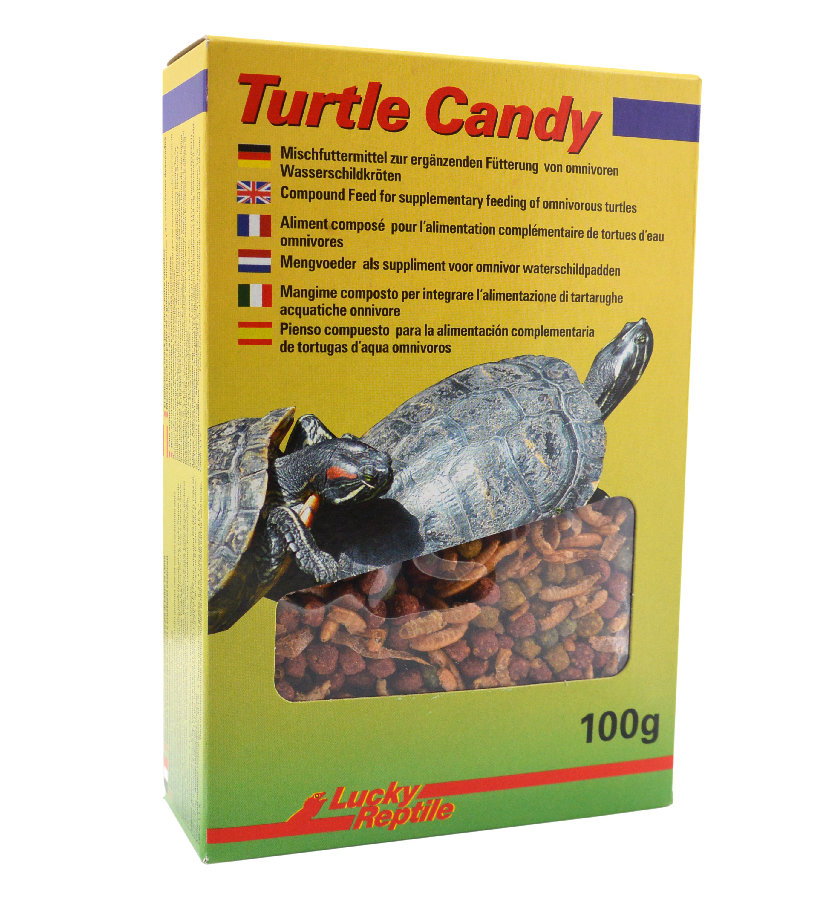 Diese bunte Mischung aus drei verschiedenen Pellets sowie Krebstieren und Preiselbeeren ist ein besonderer Leckerbissen für die meisten Wasserschildkröten. Dieses als Leckerli konzipierte Futter eignet sich hervorragend als Belohnung für zwischendurch und löst bei den sympathischen Paddlern wahre Begeisterungsstürme aus! Besonders die Preiselbeeren sind eine willkommene Abwechslung auf dem Speiseplan und werden gierig gefressen. Aufgrund des hohen Energiegehaltes sollte Turtle Candy aber nur gelegentlich gereicht werden!