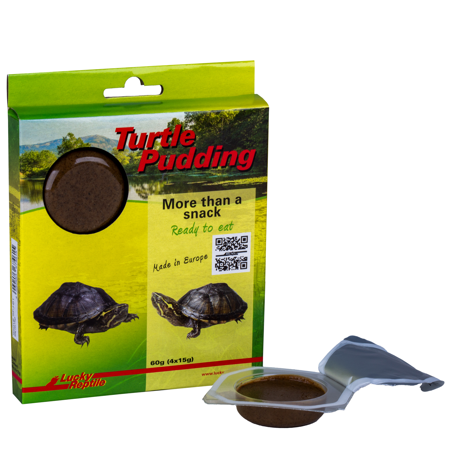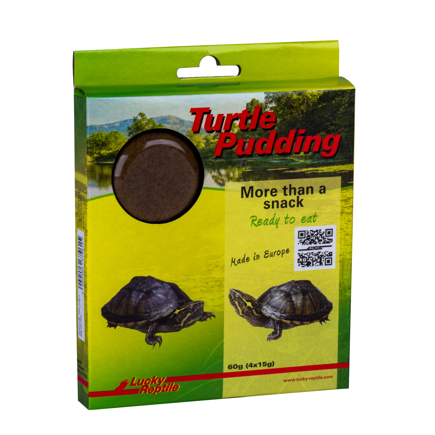 Der „Turtle Pudding“ geht im Bereich Wasserschildkrötenfutter einen ganz neuen Weg und vereint hochwertige Inhaltsstoffe mit dem sehr unterschätzten Aspekt der Beschäftigung der Tiere. Der Pudding ist leicht portionierbar und sinkt im Wasser direkt zu Boden, wo er sich selbst nach längerer Zeit nicht auflöst, sondern seine Form und Konsistenz beibehält. Schon bald nehmen die Tiere die Witterung auf und suchen gezielt nach dem Futter. Im Gegensatz zu Pellets, die mit einem Happen einfach verschlungen sind, bietet der entdeckte Turtle Pudding (je nach Portionsgröße) eine ganze Weile Futter und Beschäftigung. Die Tiere können kleinere und größerer Stücke herausbeißen, tragen ihn teilweise umher, lassen ihn fallen, schwimmen wieder hinterher und sind hiermit für eine ganze Weile beschäftigt, bis der Leckerbissen vollständig verzehrt wurde.
